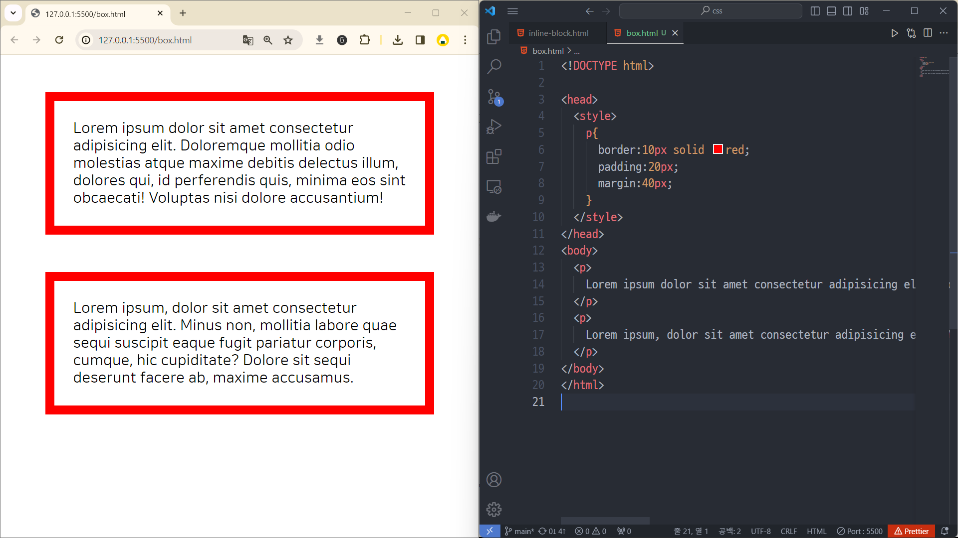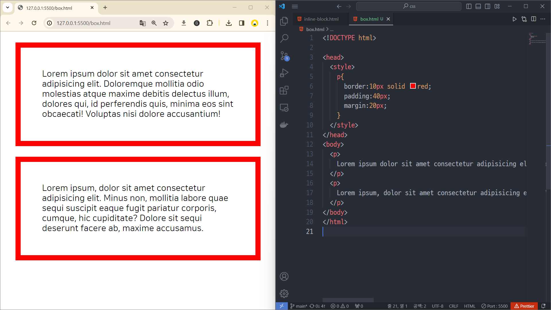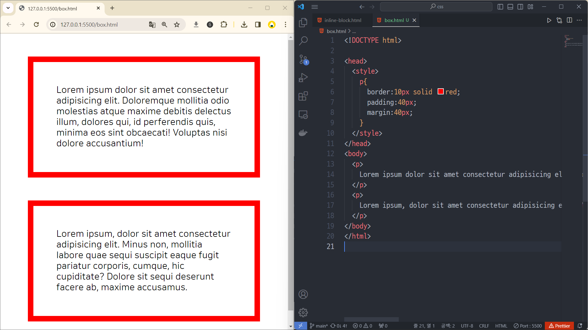 padding과 margin을 각각