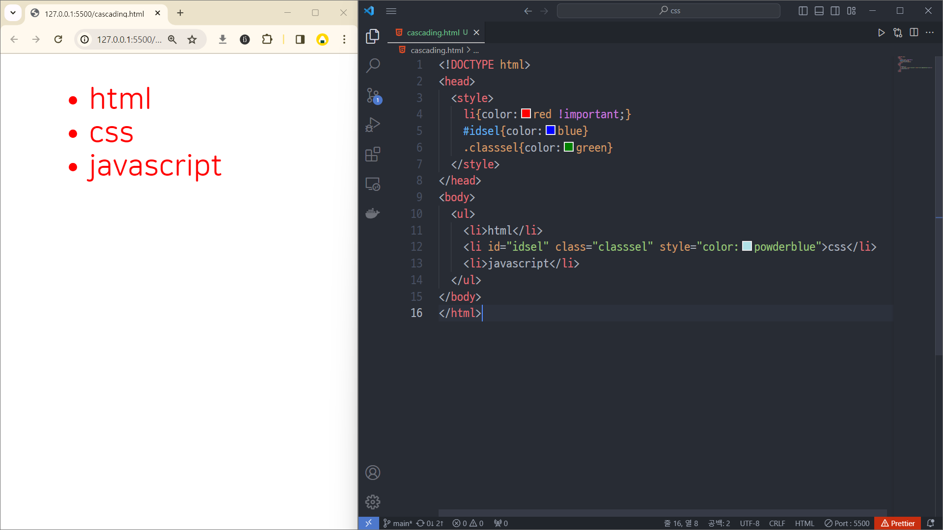 css는 cascading style sheet의 약자. cascading이 css에서 중요하다!