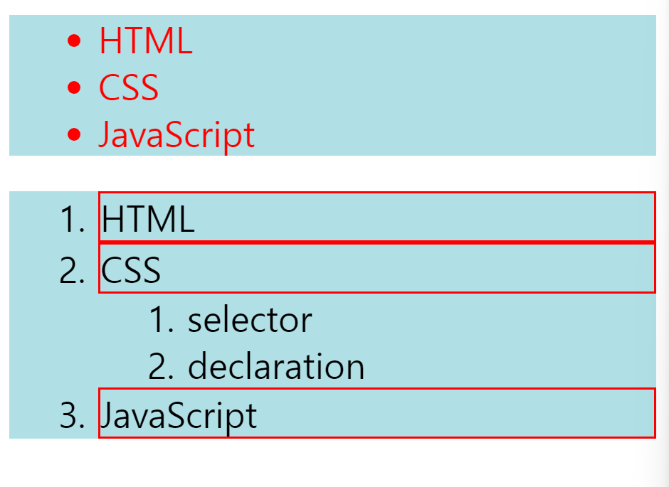 1. ul 아래에 있는 모든 li에 대해 글씨를 빨간색으로 만들자