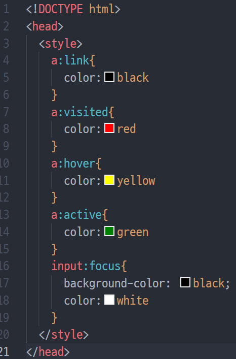 focus: 그 부분이 선택되었을 때? 어떠한 이유로 가장 마지막에 쓴다고 함.