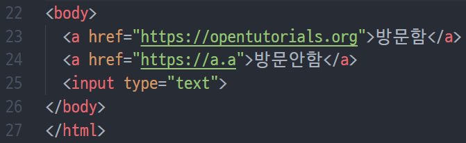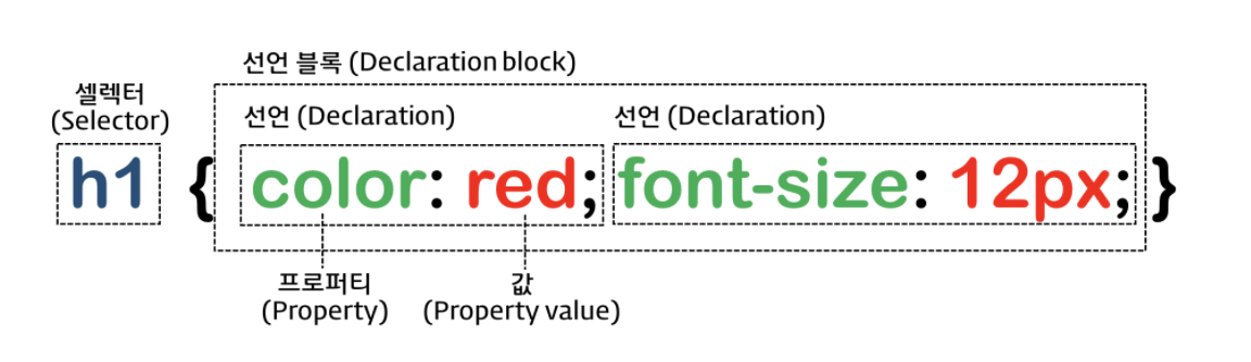 라인5과 라인9의 color:red 부분이 css 코드이다.