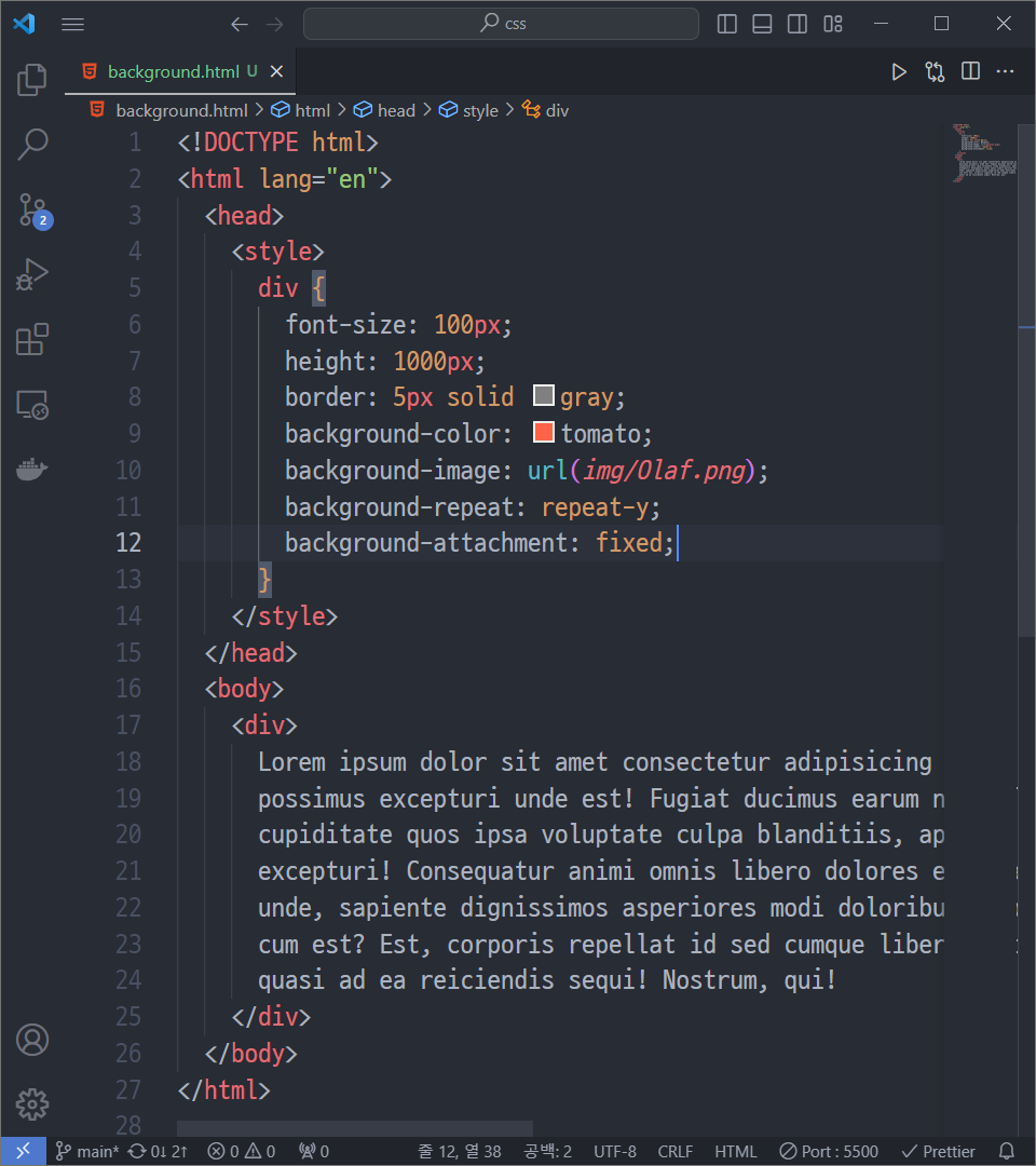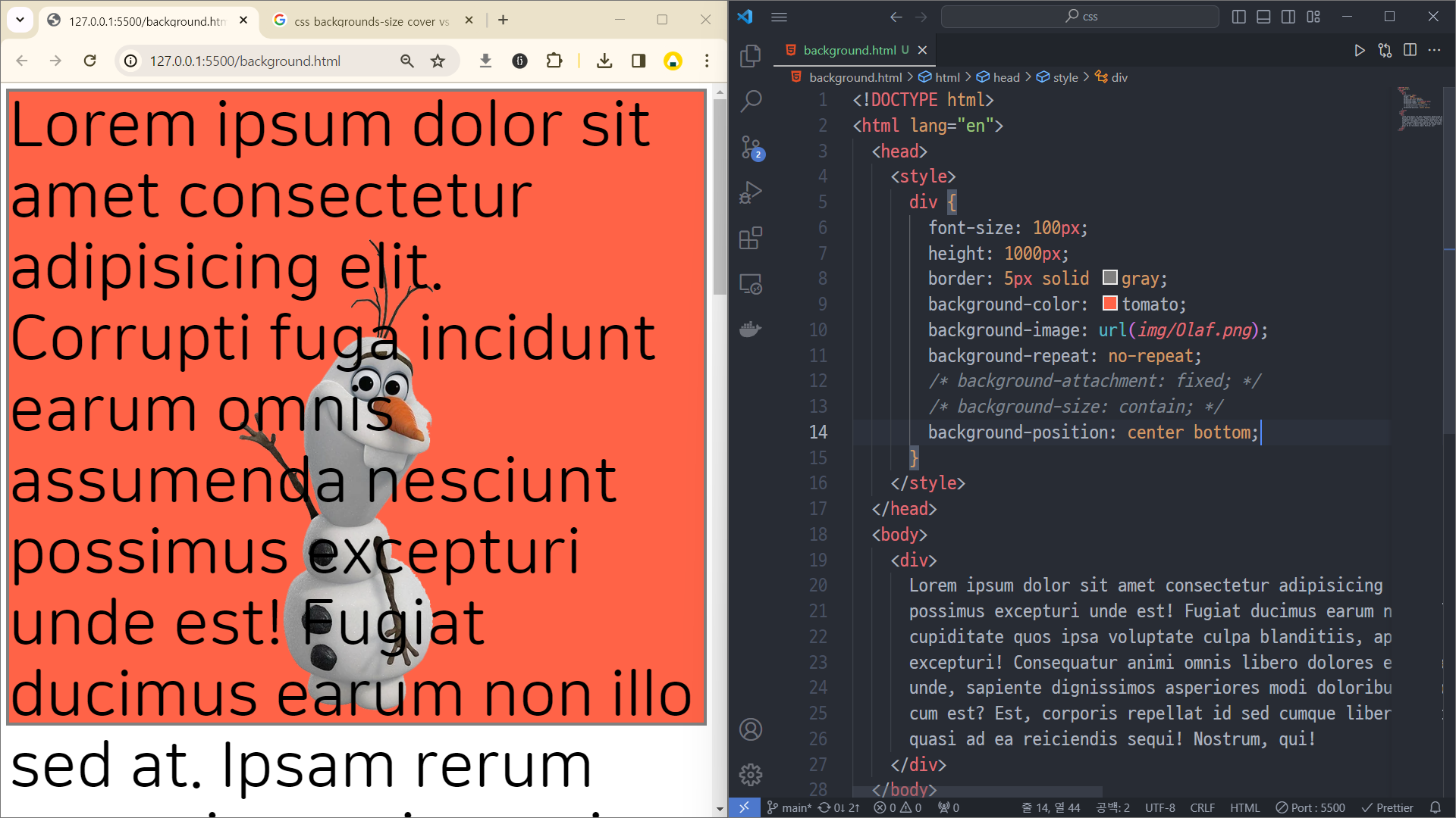 이미지가 반복해서 보이는데, 이게 싫다면 background-repeat:no-repeat를 추가하면 된다.