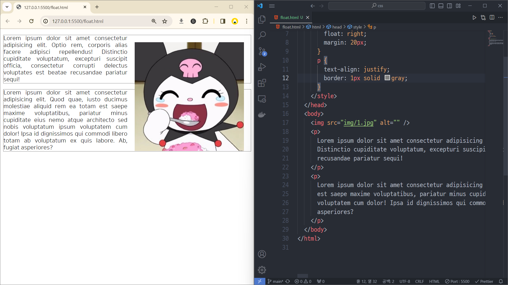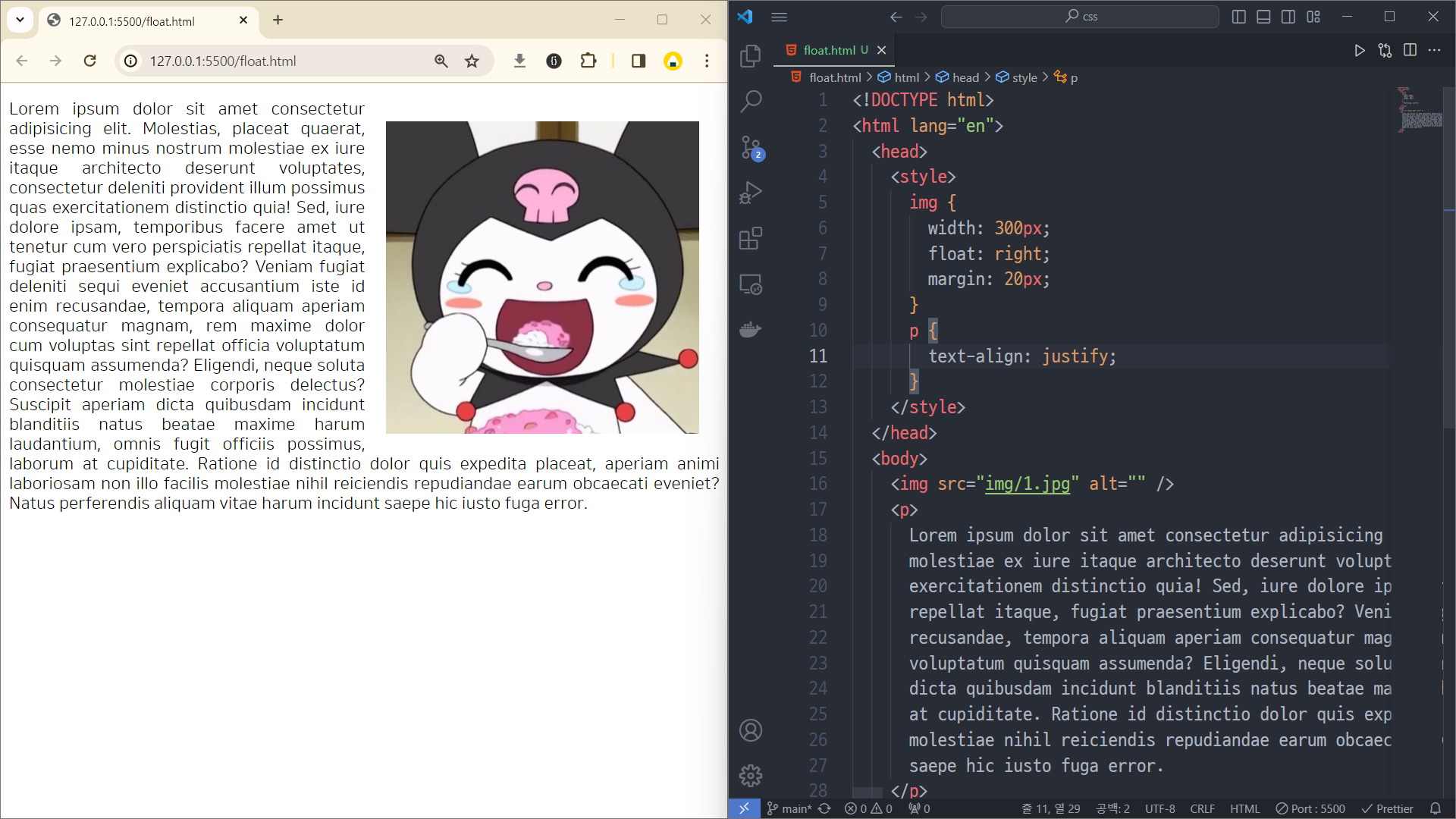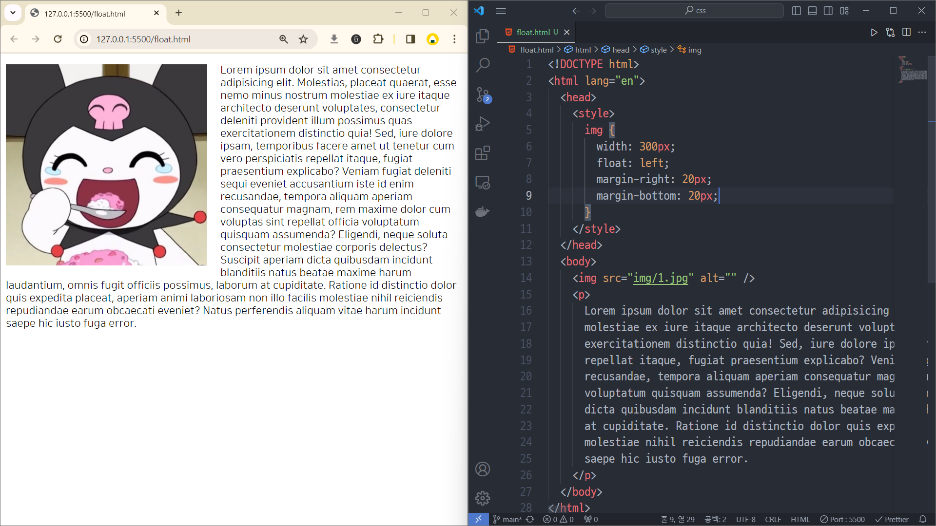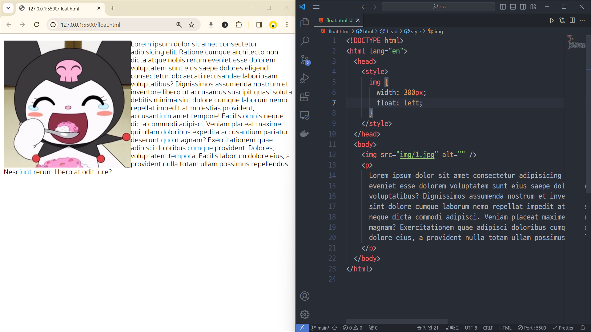 float:left를 적용하면 오른쪽과 같이 나타난다. 사진 오른쪽에 글이 적힌다.