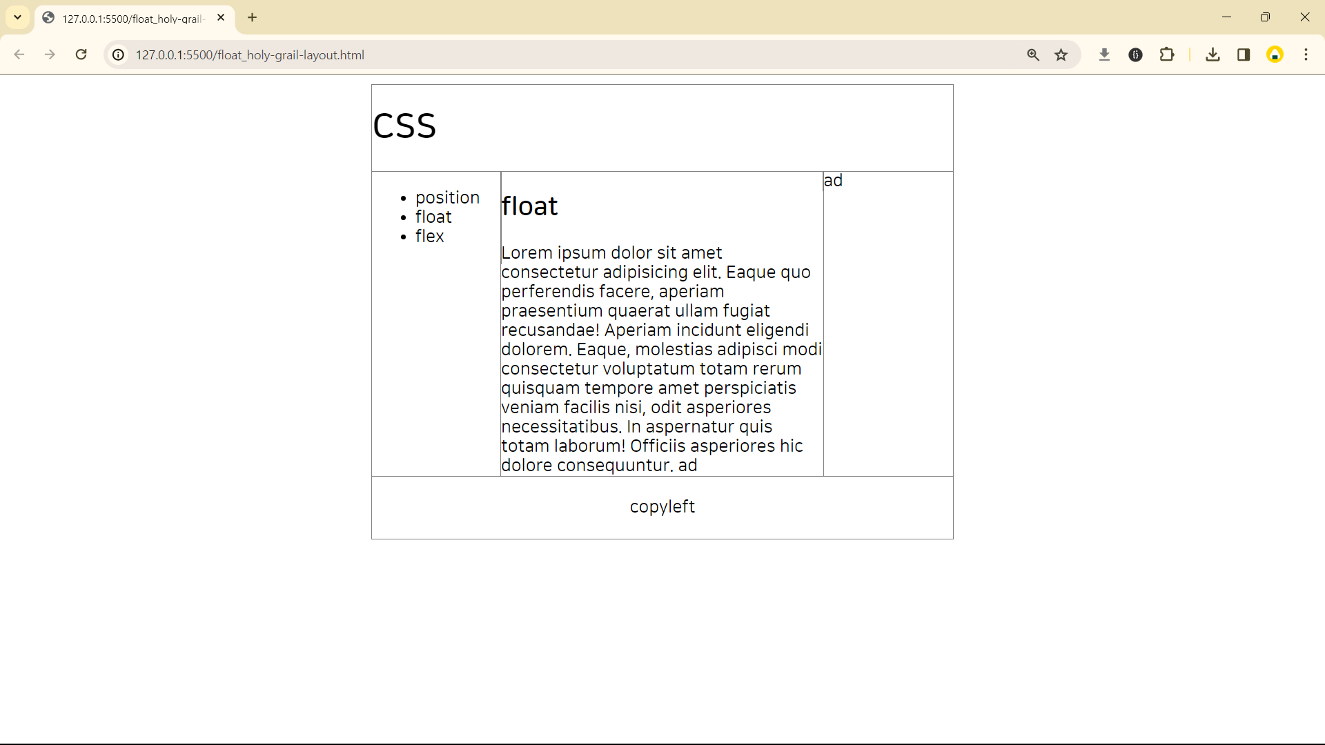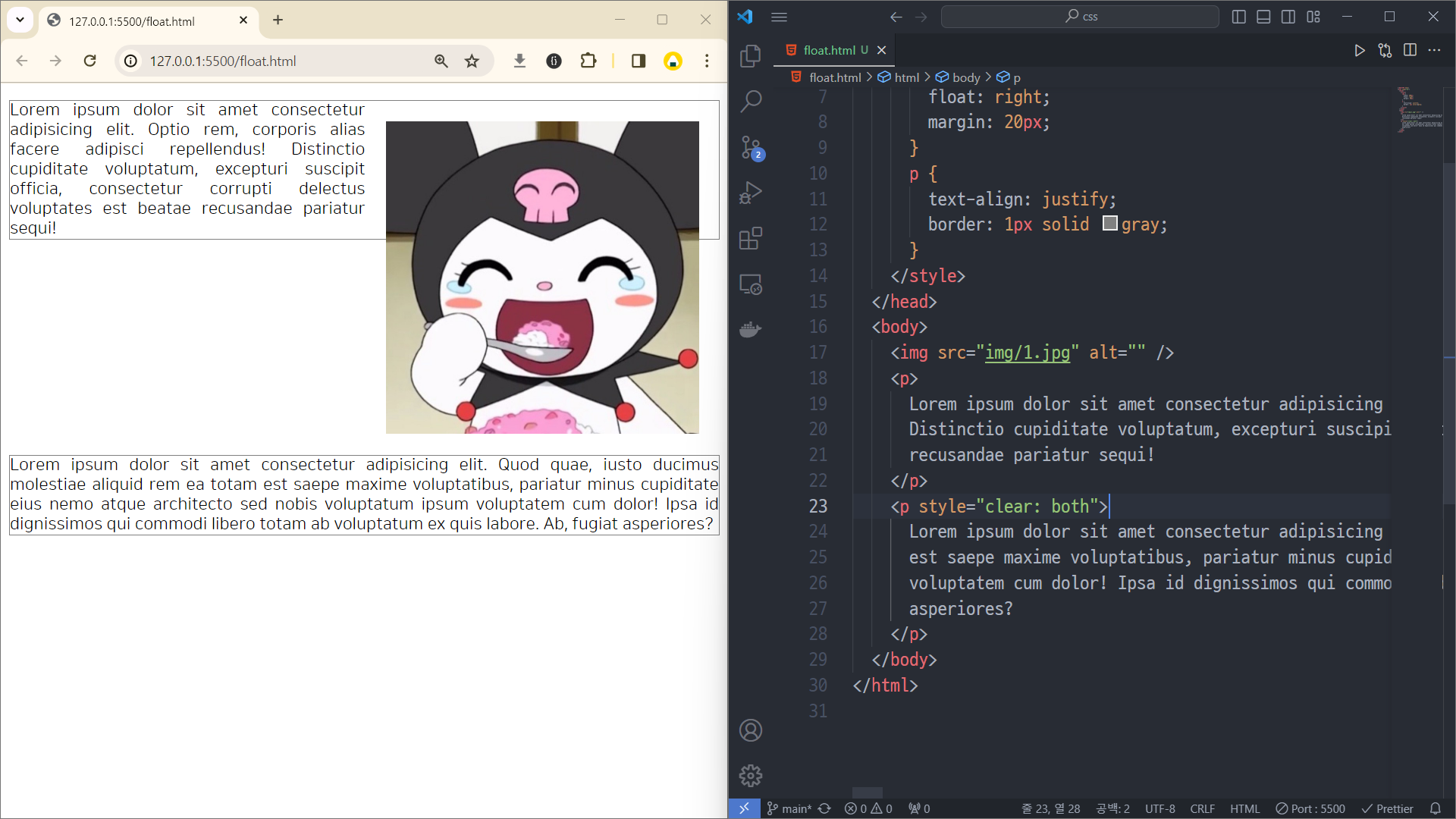 clear:right는 right float를 없애는 것, cler:left는 left float를 없애는 것이다. both는 둘 다 없애는 것.
