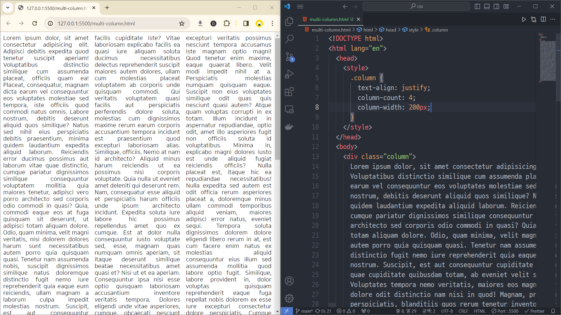 column-count와 column-width 2개를 동시에 사용할 수 있다. 200px 이상이면서 4개 이하의 컬럼을 만든다.