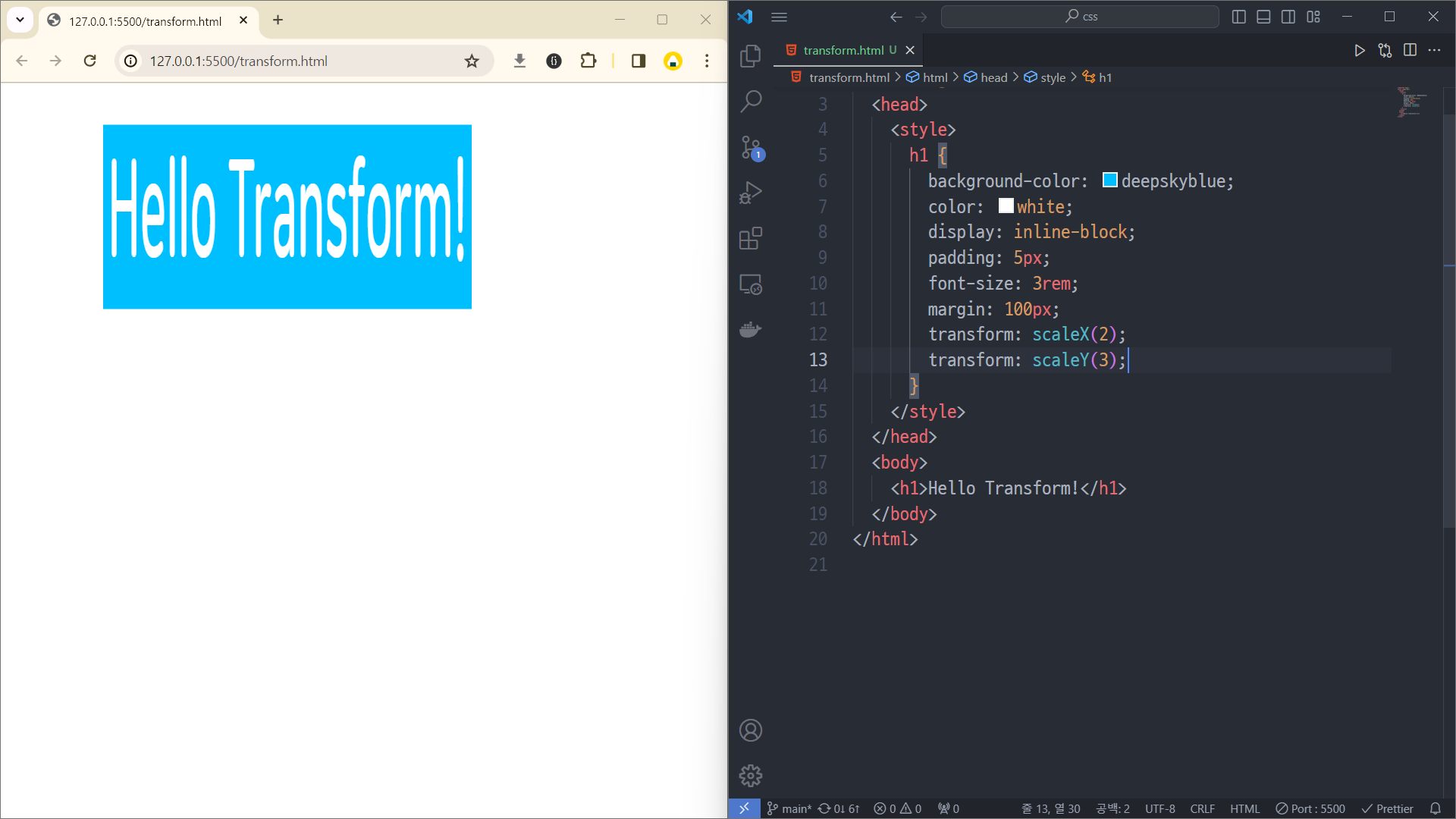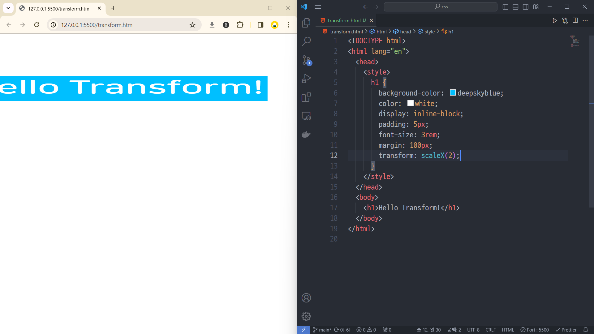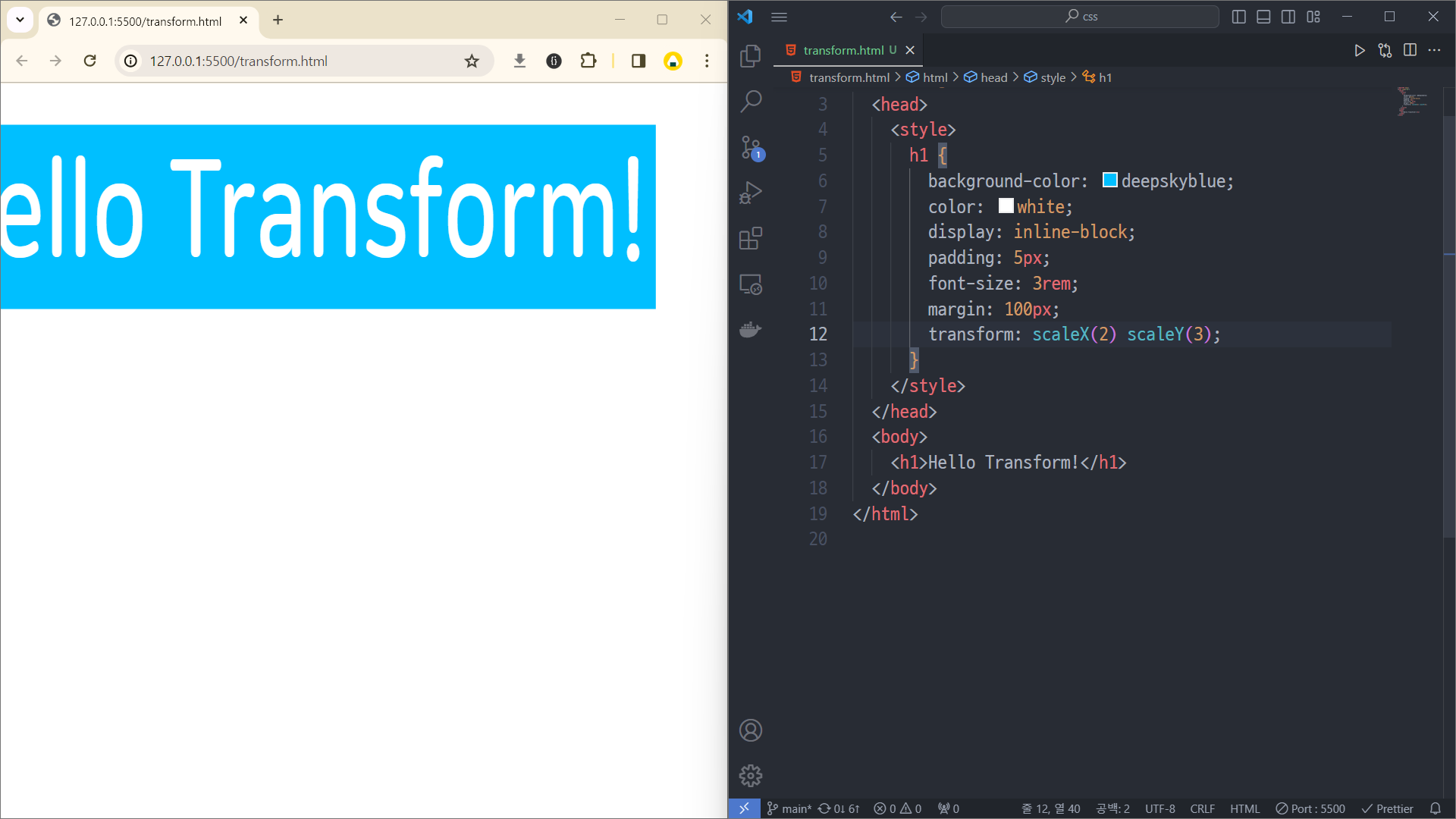 라인 12는 transform: scale(2, 3);로 바꿔도 똑같음.