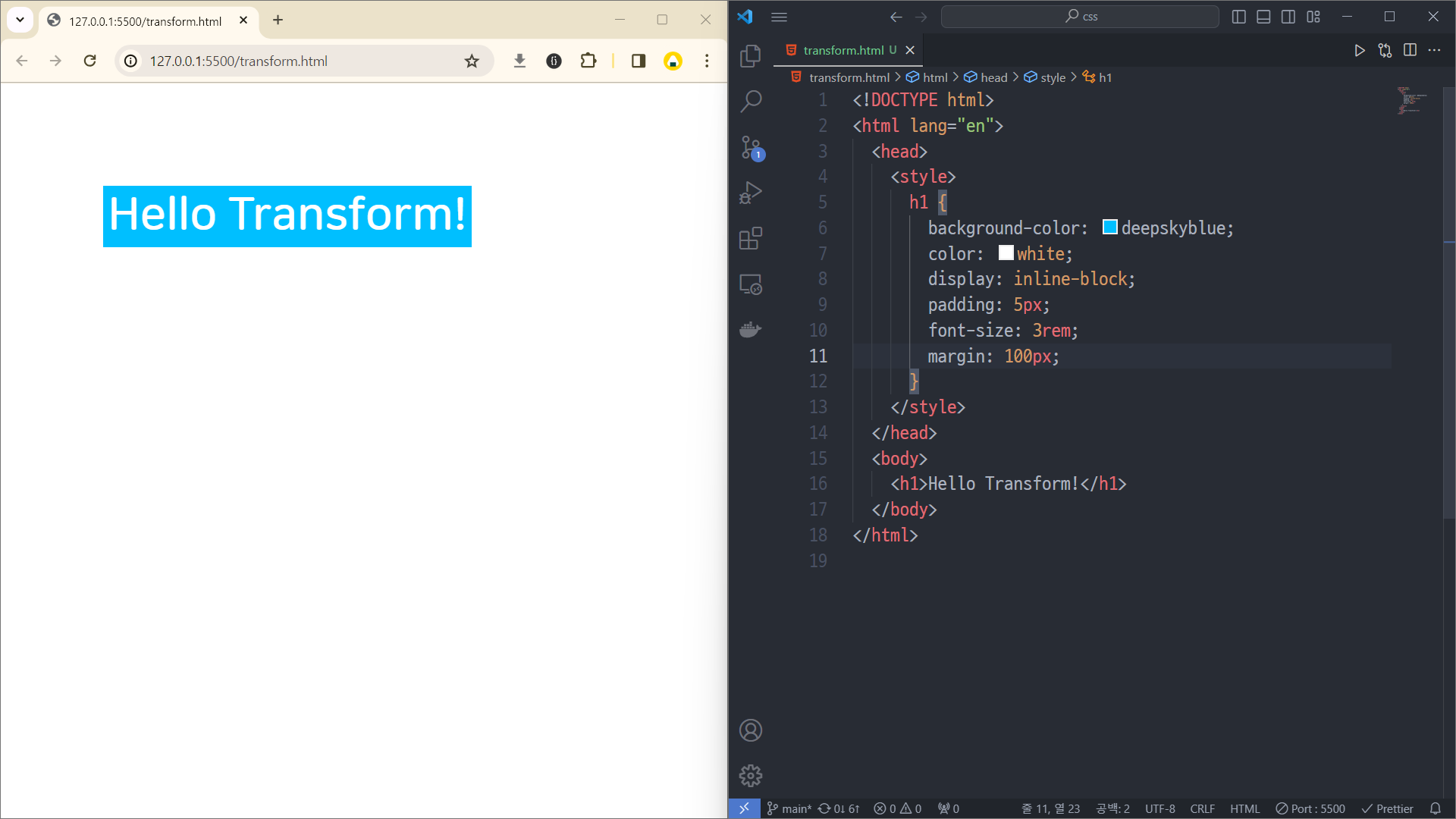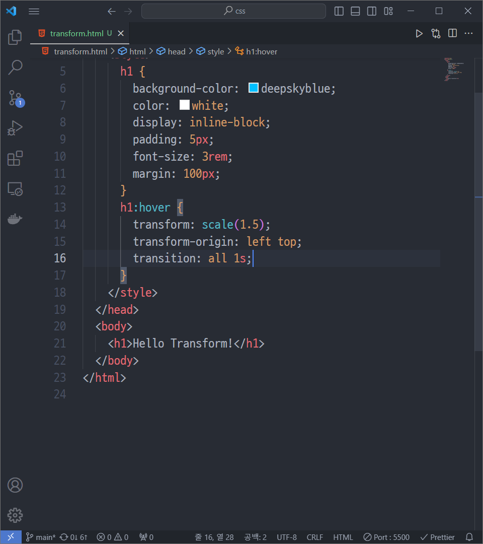 그래서 transform 여러 개를 사용하려면 한 줄에 써줘야 함.